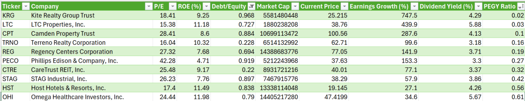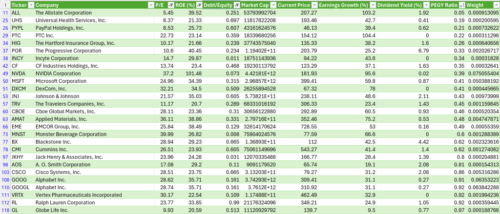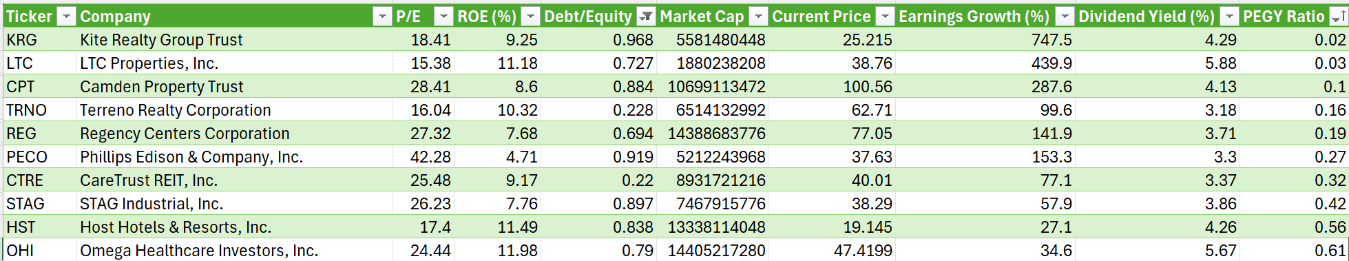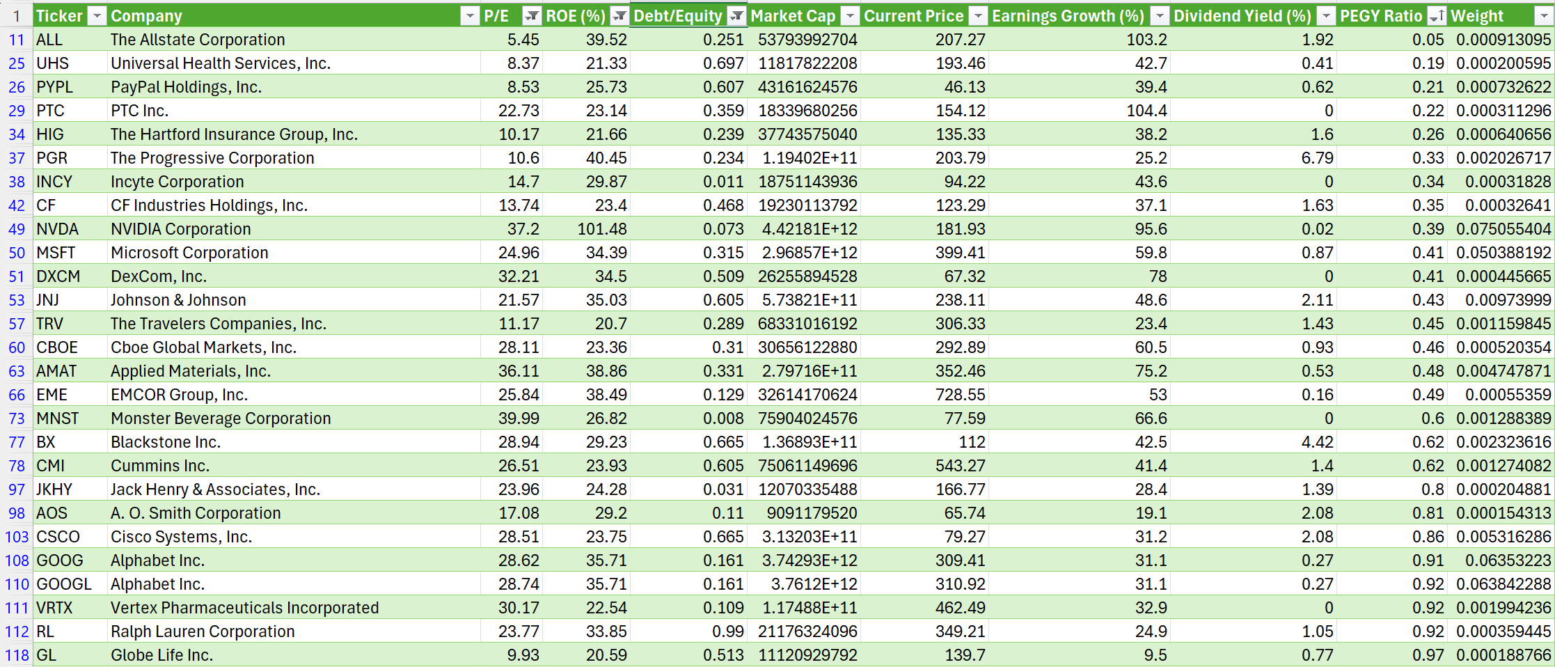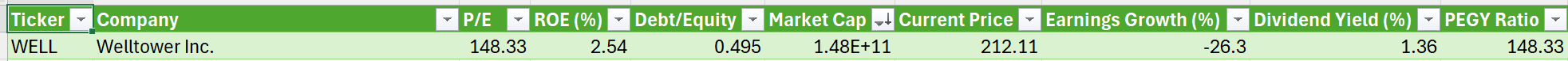 The database table backing this: