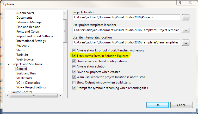 Track Active Item in Solution Explorer
