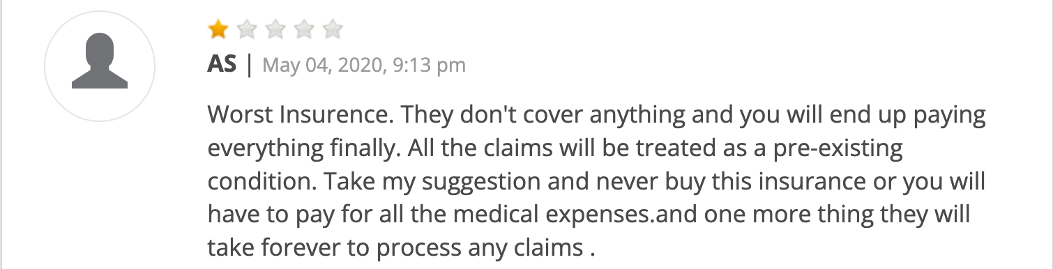 • Patriot America: Folks, I took 100K coverage with IMG through the agent insubuy.Unfortunately one week before my dad left, I had to take him to ER as he had an attack. The bills came out to 50K+, the insurance company denied all claims saying it is pre-existing. The hospital and the doctor who attended him at ER as well as the hospital gave me a letter saying it is not pre-existing. But insurance company will not accept it.The guy at the agent, talks nicely but he says we cannot do anything, just go in understanding with the hospital and pay it in installments. He also says do not file any law suit it is not useful.All this is total scam, i did pay a huge premium but now i have lots of bills to pay.So i agree with others, please do your research properly. And do not believe sales guys or agents, they will talk very nicely but when it comes to claims you are on your own… source
