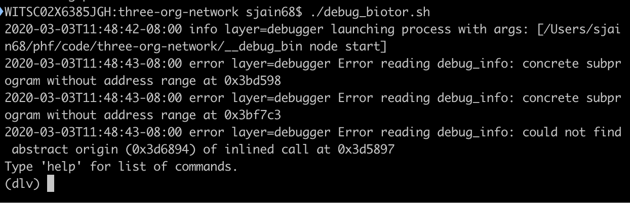 | could not find symbol value for github.com/hyperledger/fabric/core/chaincode/platforms/util · Issue #1910 · go-delve/delve What version of Delve are you using (dlv version)? $ dlv version Delve Debugger Version: 1.3.2 Build: $Id: 569ccbd514fc47c8b4c521b142556867ec5e6917 What version of Go are you using? (go version)? $… github.com |