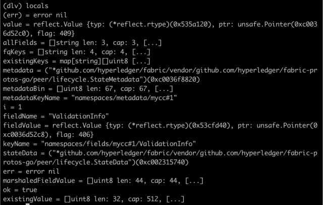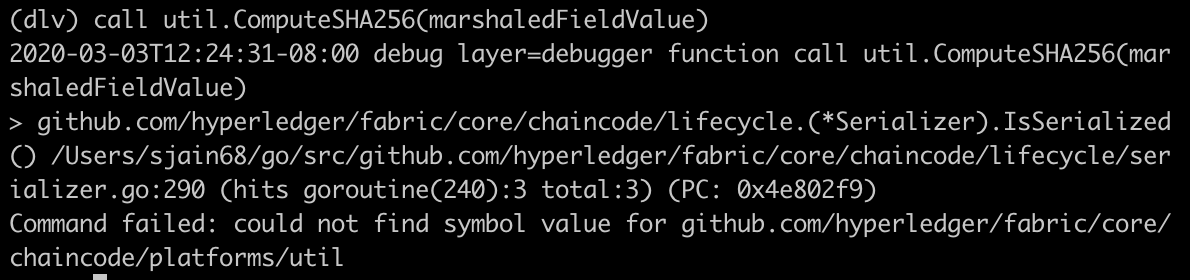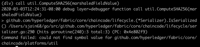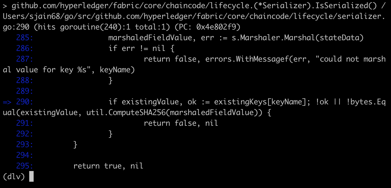 Next I wanted to stick a breakpoint in https://github.com/hyperledger/fabric/blob/release-2.0/core/chaincode/lifecycle/serializer.go#L290.