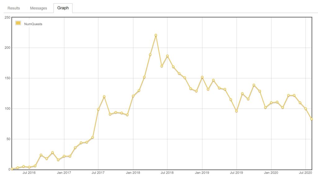 below graph shows number of questions tagged hyperledger-fabric over time