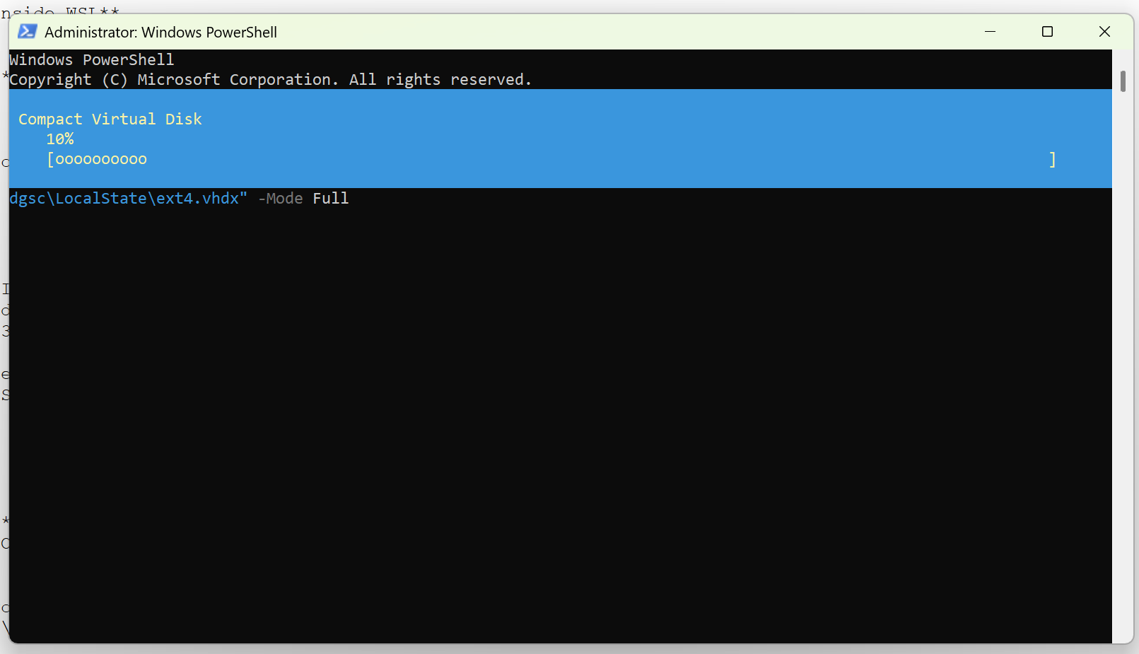 Optimize-VHD -Path "C:\path\to\ext4.vhdx" -Mode Full