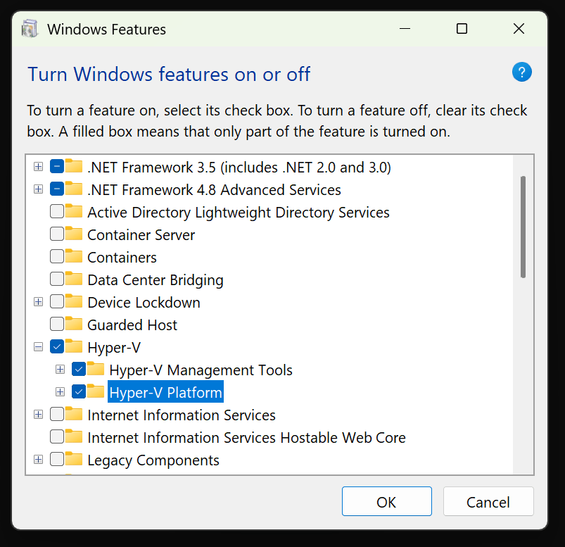 Prerequisites: HyperV Platform and HyperV Management Tools must be installed