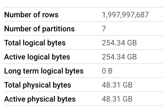 The first thing which impressed me is that the raw CSV lineorder table measured 239,234,458,925 bytes but it got reduced to 57 GB when ingested into Clickhouse and 48 GB in case of BigQuery