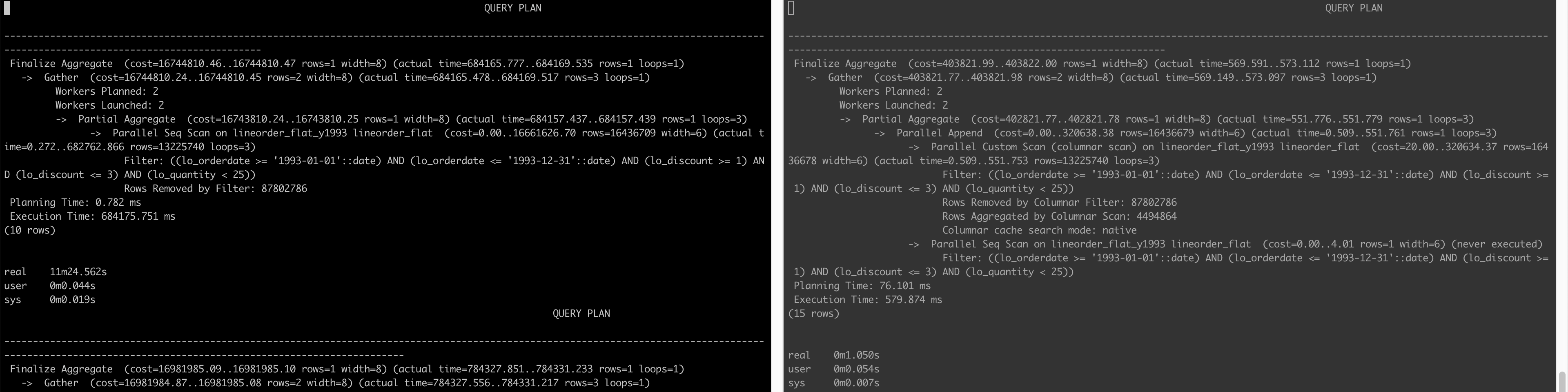-> Parallel Custom Scan (columnar scan) on lineorder_flat_y1994 lineorder_flat (cost=20.00..2598.85 rows=126083 width=6) (actual time=0.894..90.258 rows=105834 loops=3)