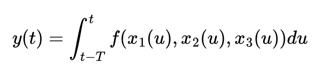 In above x1, x2, x3 are 3 streaming inputs. T is the time window. f cannot be any function. there are constraints on what f can be.