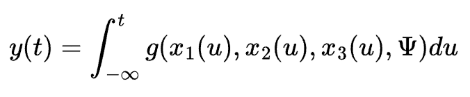 \Psi is reference data in an external database. It is not available as streaming and also evolves with t. g is an arbitrary function.