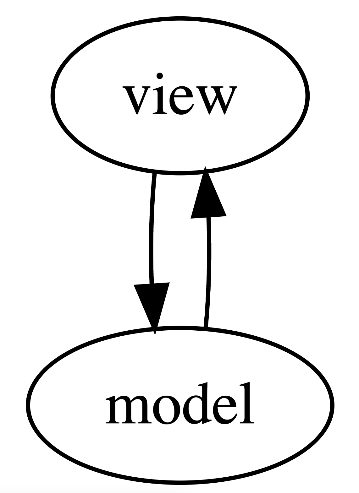 From Graph theory point of view this is a cyclic and bi-directional graph no different than the MVC pattern below (omitting the controller):