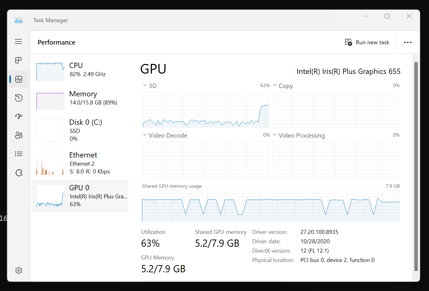 `-- Device #0: Intel(R) Iris(R) Plus Graphics 655